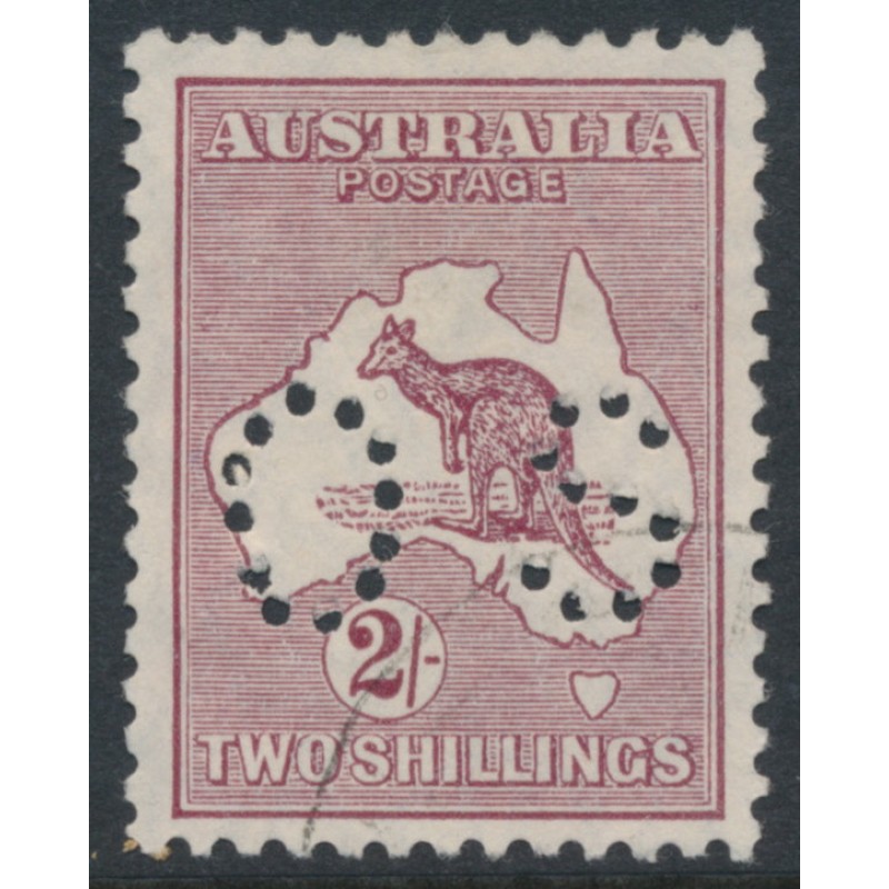 AUSTRALIA - 1929 2/- maroon Kangaroo, SM watermark, perf. OS, CTO – ACSC # 39Awa