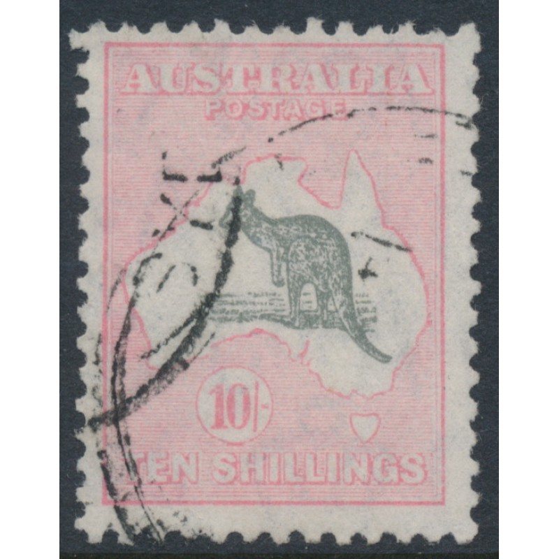 AUSTRALIA / TASMANIA 1932 10/- grey/pink Kangaroo, CofA watermark, used – no thins, tears or bends. BW(ACSC) Cat. # 50A SG Cat. # 136