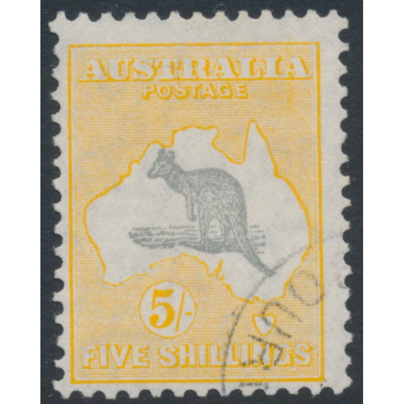 AUSTRALIA 1932 5/- grey/yellow-buff Kangaroo, CofA watermark, cancelled to order – without gum, no thins, tears or bends. BW(ACSC) Cat. # 46Cw SG Cat. # 135