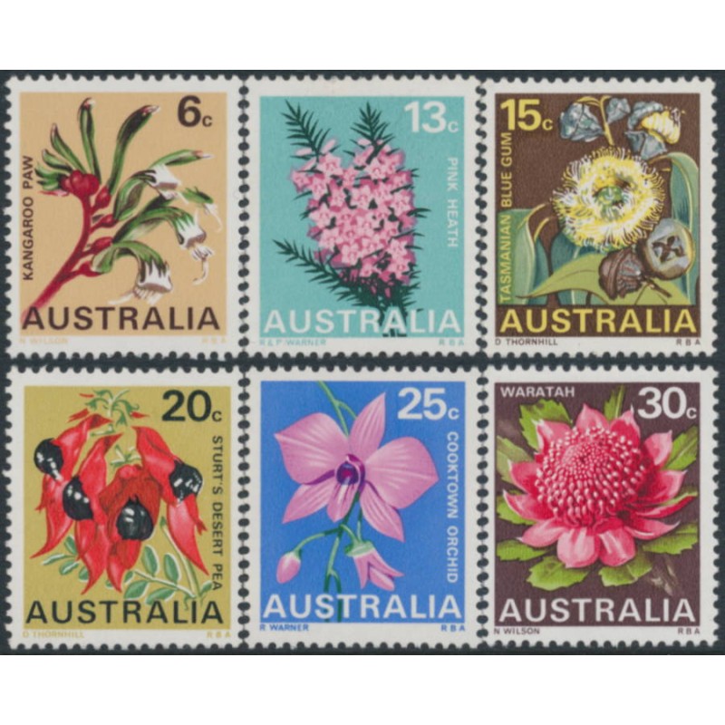 AUSTRALIA 1968 6c to 30c State Floral Emblems set of 6, mint never hinged – no thins, tears or bends. SG Cat. # 420-425