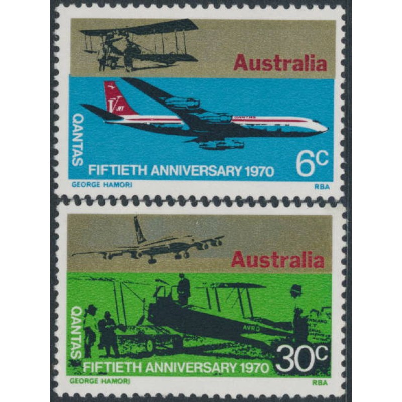 AUSTRALIA 1970 QANTAS set of 2, mint never hinged – no thins, tears or bends. SG Cat. # 477-478