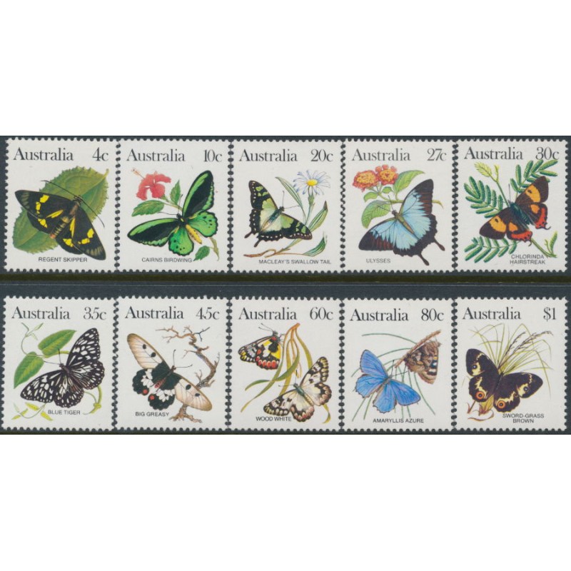 AUSTRALIA 1983 4c to $1 Butterflies set of 10, mint never hinged – no thins, tears or bends. SG Cat. # 783, 785, 787, 791, 792a, 793, 795, 798, 802, 806