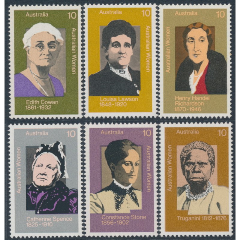 AUSTRALIA 1975 10c Famous Women set of 6, perf. 14:15, mint never hinged – no thins, tears or bends. SG Cat. # 602a-607a