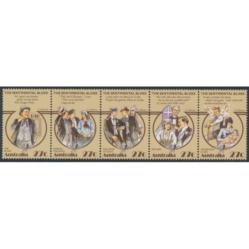 AUSTRALIA 1983 27c x 5 The Sentimental Bloke horizontal se-tenant strip of 5, mint never hinged – no thins, tears or bends. SG Cat. # 890a