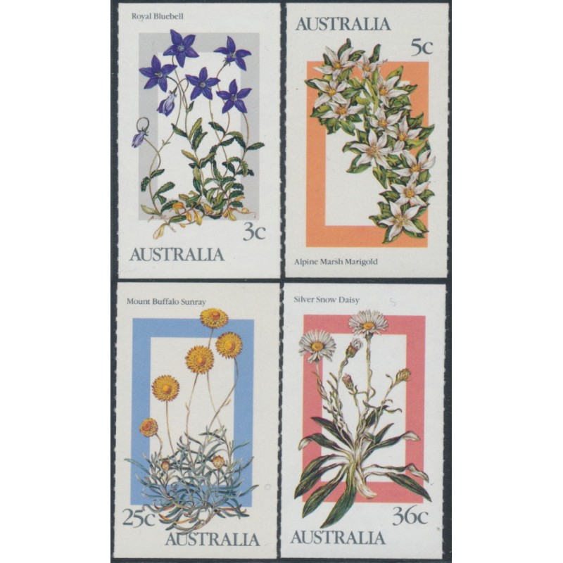 AUSTRALIA 1987 3c to 36c Alpine Wild Flowers booklet stamps set of 4, mint never hinged – no thins, tears or bends. SG Cat. # 1028-1031