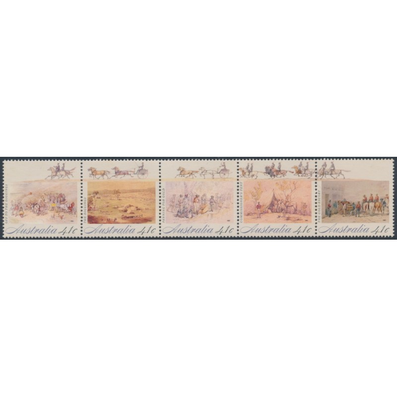 AUSTRALIA 1990 41c x 5 Colonial Development – The Gold Rush horizontal se-tenant strip of 5, mint never hinged – no thins, tears or bends. SG Cat. # 1254a