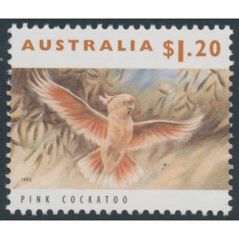 1998 $1.20 Cockatoo, re-issue with orange-brown inscription, mint never hinged – no thins, tears or bends.
