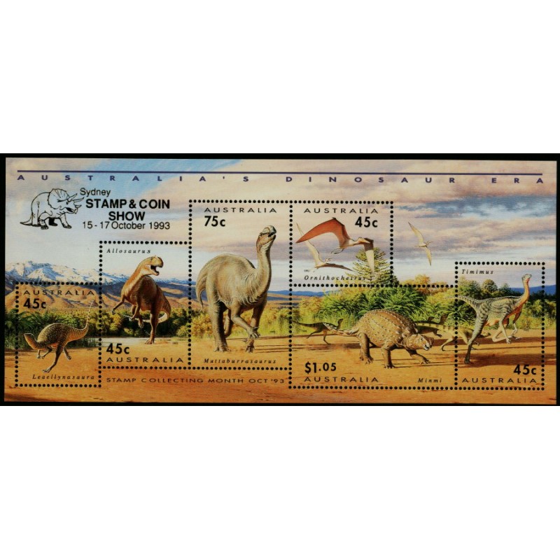 AUSTRALIA 1993 Prehistoric Animals (Dinosaurs) M/S, overprinted Sydney Stamp & Coin Show, mint never hinged – no thins, tears or bends. SG Cat. # MS1429