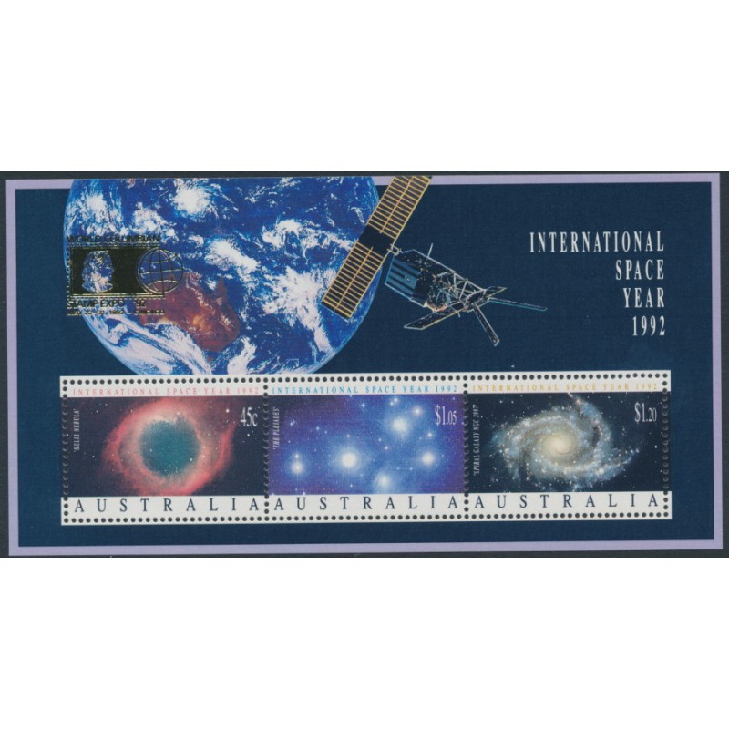 AUSTRALIA 1992 International Space Year M/S, overprinted World Columbian Stamp Expo, mint never hinged – no thins, tears or bends. SG Cat. # MS1346
