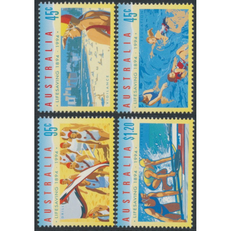 AUSTRALIA 1994 45c to $1.20 Surf Lifesaving set of 4, mint never hinged – no thins, tears or bends. SG Cat. # 1439-1442