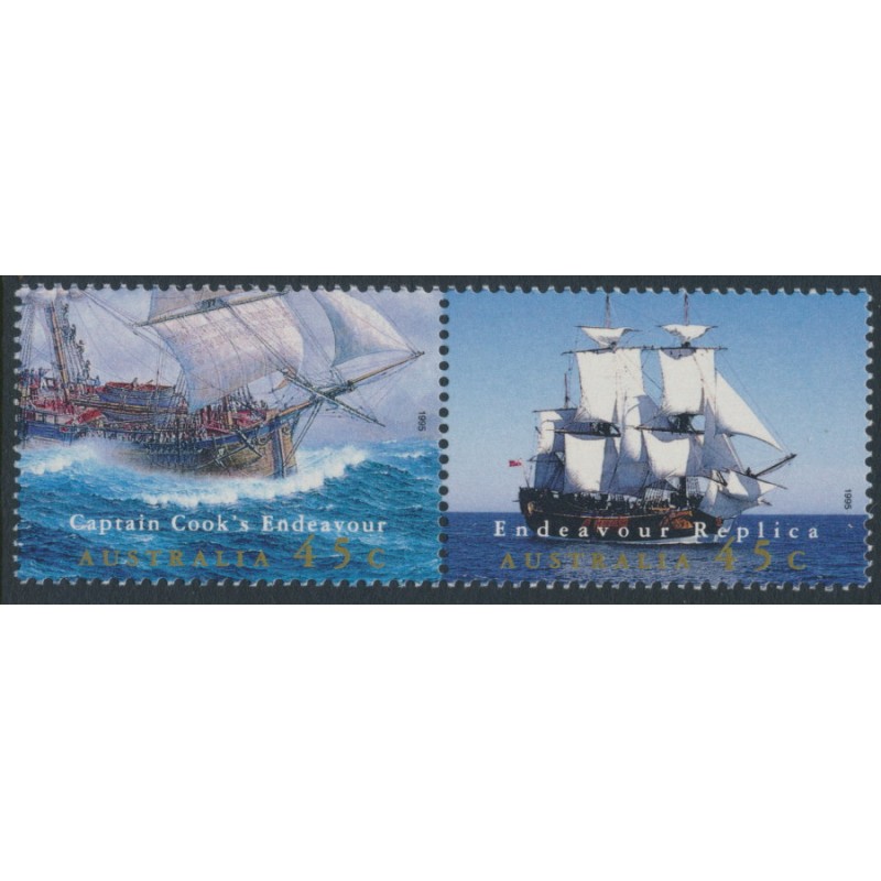 AUSTRALIA 1995 45c x 2 Endeavour Replica se-tenant horizontal pair, mint never hinged – no thins, tears or bends. SG Cat. # 1510a