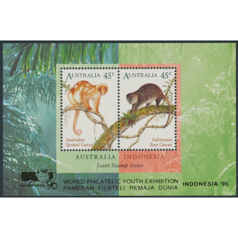 AUSTRALIA 1996 Australia-Indonesia Joint issue M/S, overprinted World Philatelic Youth Exhibition, mint never hinged – no thins, tears or bends. SG Cat. # MS1588