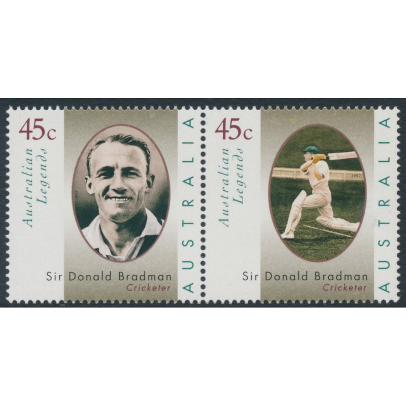 AUSTRALIA 1997 45c x 2 Sir Donald Bradman, horizontal se-tenant pair, mint never hinged – no thins, tears or bends. SG Cat. # 1663a