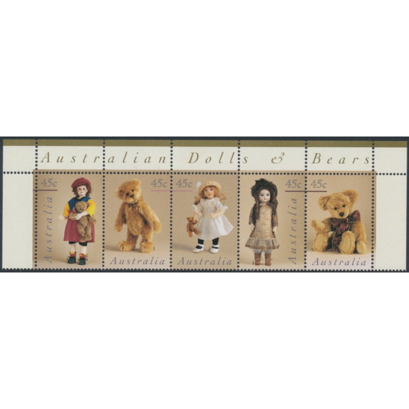 AUSTRALIA 1997 45c x 5 Dolls & Teddy Bears se-tenant strip of 5, mint never hinged – no thins, tears or bends. SG Cat. # 1693a