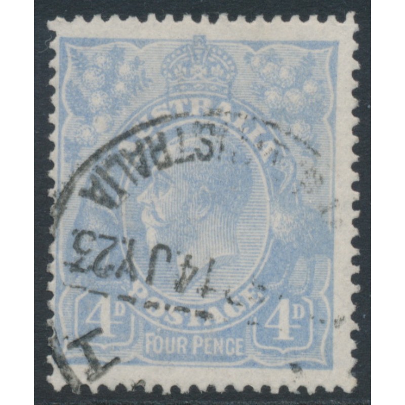 AUSTRALIA - 1922 4d blue KGV, ‘flaw in left wattles’ [2R59], used – ACSC # 112D(2)vf