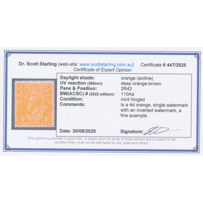 ![AUSTRALIA - 1915 4d orange [aniline] KGV, inverted watermark, MH – ACSC # 110Aa AUSTRALIA - 1915 4d orange [aniline] KGV, inverted watermark, MH – ACSC # 110Aa](https://www.scottstarling.com.au/image/cache/catalog/KGVGeneral/26508a-74x74.jpg)