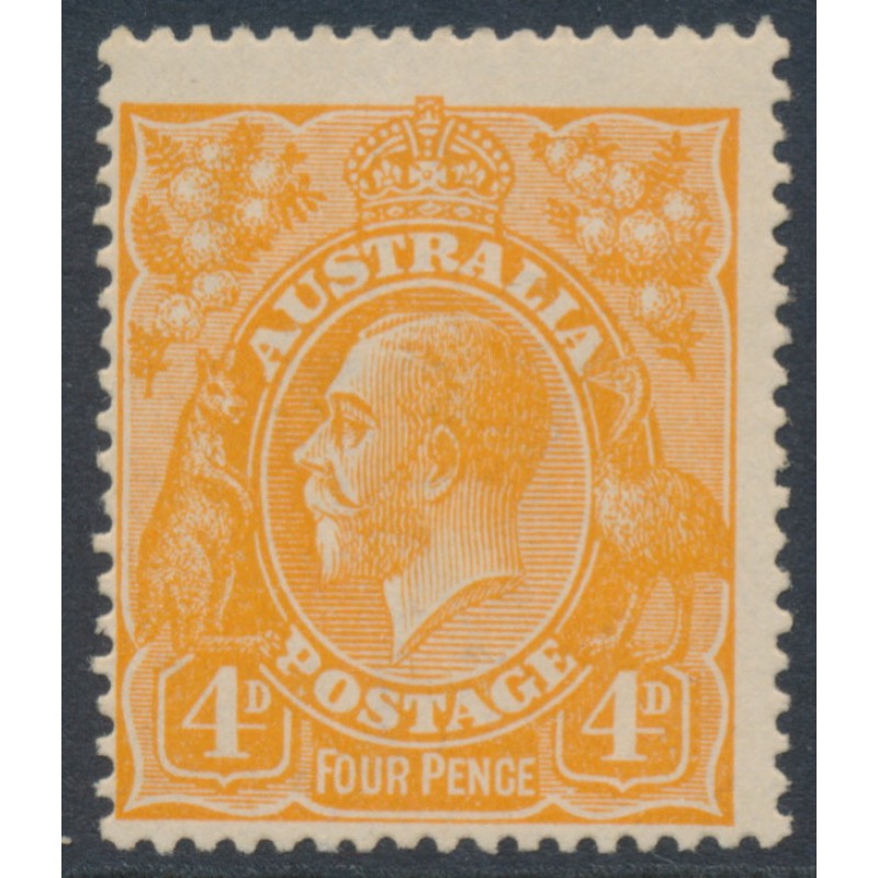 AUSTRALIA 1919 4d orange KGV Head, single watermark, mint hinged – no thins, tears or bends. BW(ACSC) Cat. # 110H SG Cat. # 22d