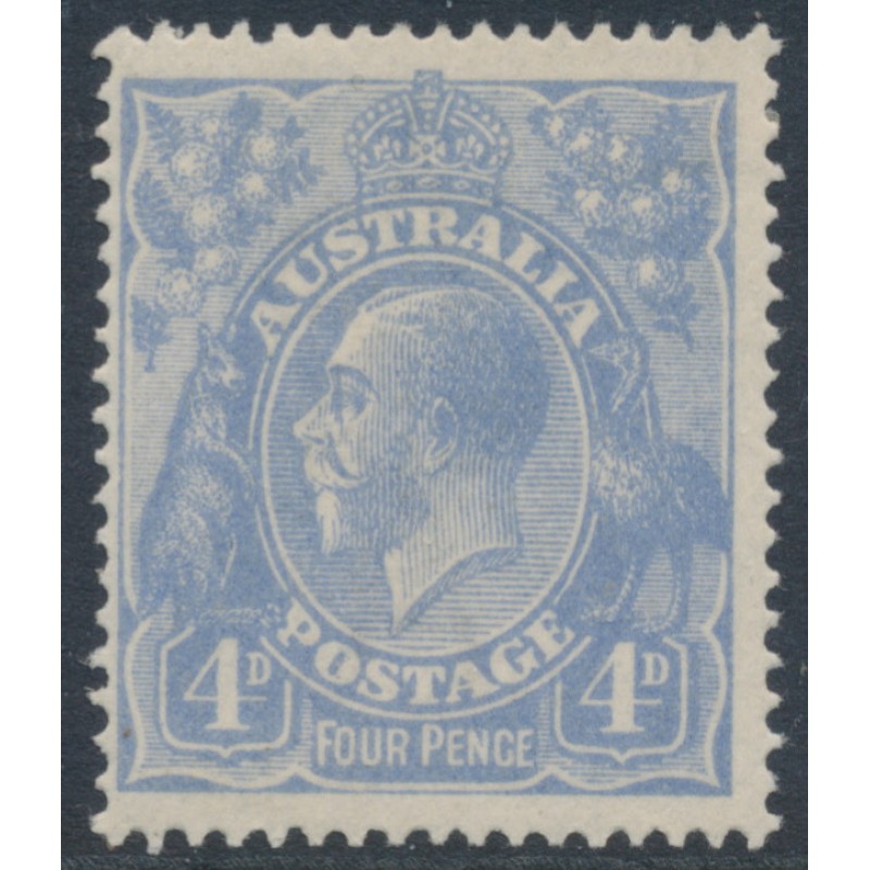 AUSTRALIA 1922 4d pale ultramarine KGV Head, single watermark, mint hinged – no thins, tears or bends. BW(ACSC) Cat. # 112A SG Cat. # 66