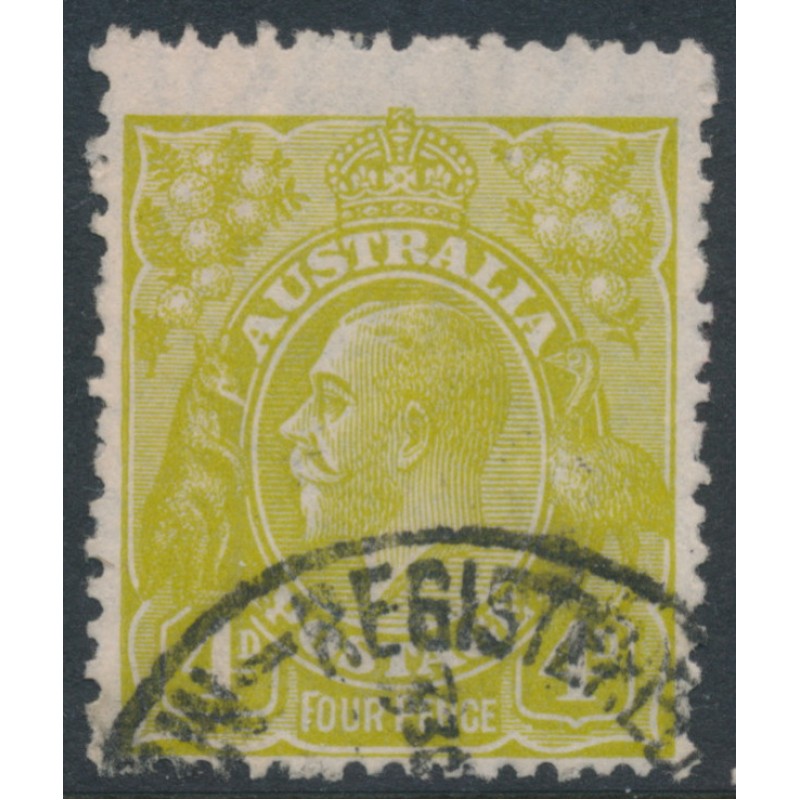 AUSTRALIA - 1929 4d olive KGV, 'Kangaroo's tongue' [4L25], used – ACSC # 116B(4)e