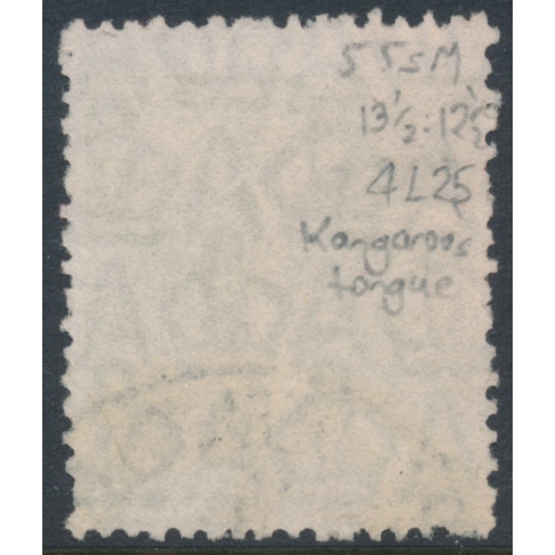 1929 4d greenish olive KGV Head, small multiple watermark, perf. 13½:12½, with the variety ‘Kangaroo’s tongue’ [plate position = 4L25], used – no thins, tears or bends. Has a Starling certificate.
