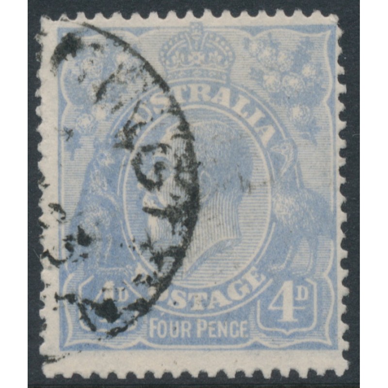 AUSTRALIA - 1922 4d blue KGV, ‘flaw in left wattles’ [2R59], used – ACSC # 112A(2)vf