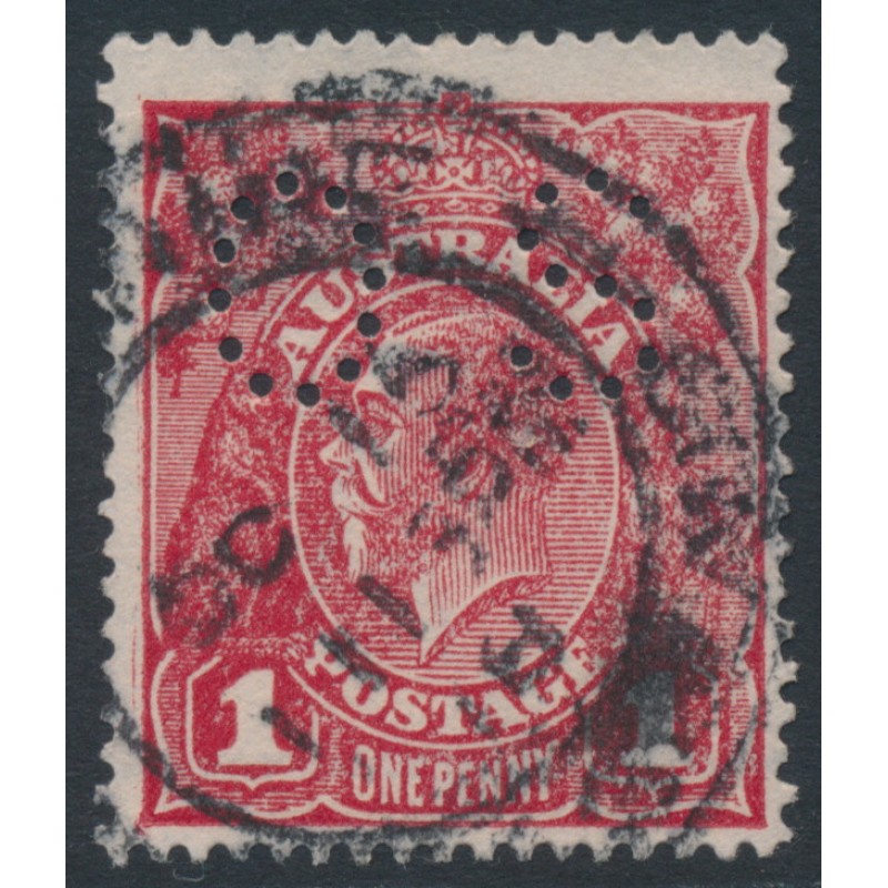 AUSTRALIA - 1918 1d red-brown KGV (shade = G76), perf. OS, used – ACSC # 72Obb