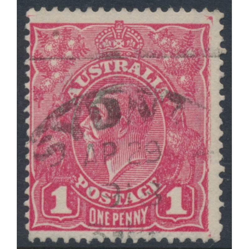 AUSTRALIA 1918 1d rosine KGV Head (shade = G68), used – no thins, tears or bends. Has a Starling certificate. BW(ACSC) Cat. # 72I