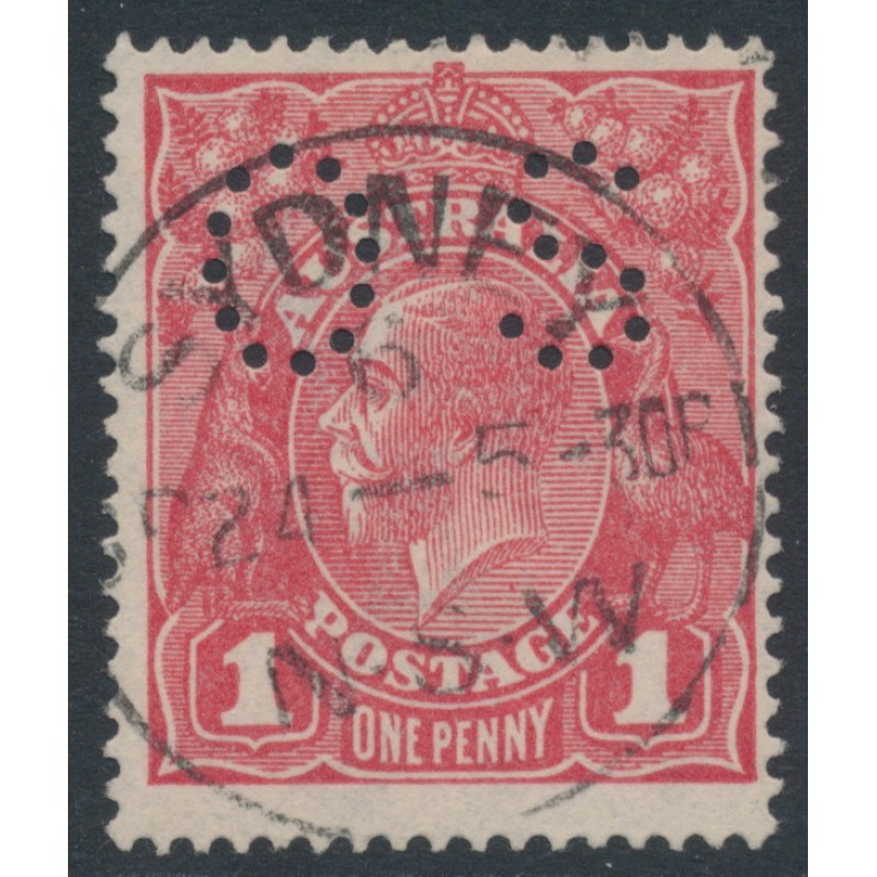 AUSTRALIA - 1915 1d reddish pink KGV (shade = G15), perf. OS, used – ACSC # 71Fbb