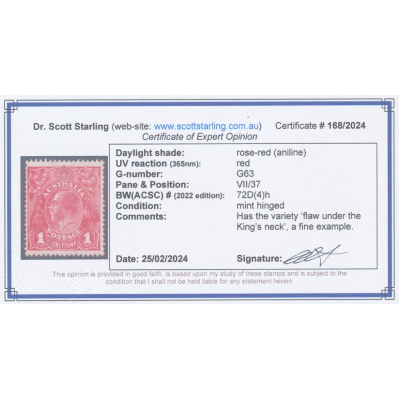 ![AUSTRALIA - 1917 1d red KGV (G63), 'flaw under King's neck' [VII/37], MH – ACSC # 72D(4)h AUSTRALIA - 1917 1d red KGV (G63), 'flaw under King's neck' [VII/37], MH – ACSC # 72D(4)h](https://www.scottstarling.com.au/image/cache/catalog/PennyVarieties/22065b-74x74.jpg)