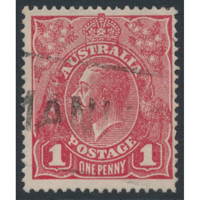 AUSTRALIA 1918 1d brownish red KGV Head (shade = G75), has the variety ‘spot on Y’ [position = IV/41], used – no thins, tears or bends. BW(ACSC) Cat. # 72N(2)m