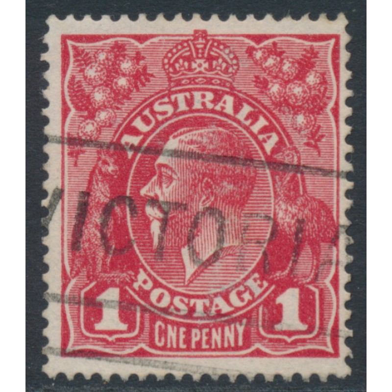 AUSTRALIA 1915 1d scarlet-red KGV Head (shade = G17), with the variety ‘CNE for ONE’ [plate position = VIII/45], used – no thins, tears or bends. Has a Starling certificate. BW(ACSC) Cat. # 71G(4)q
