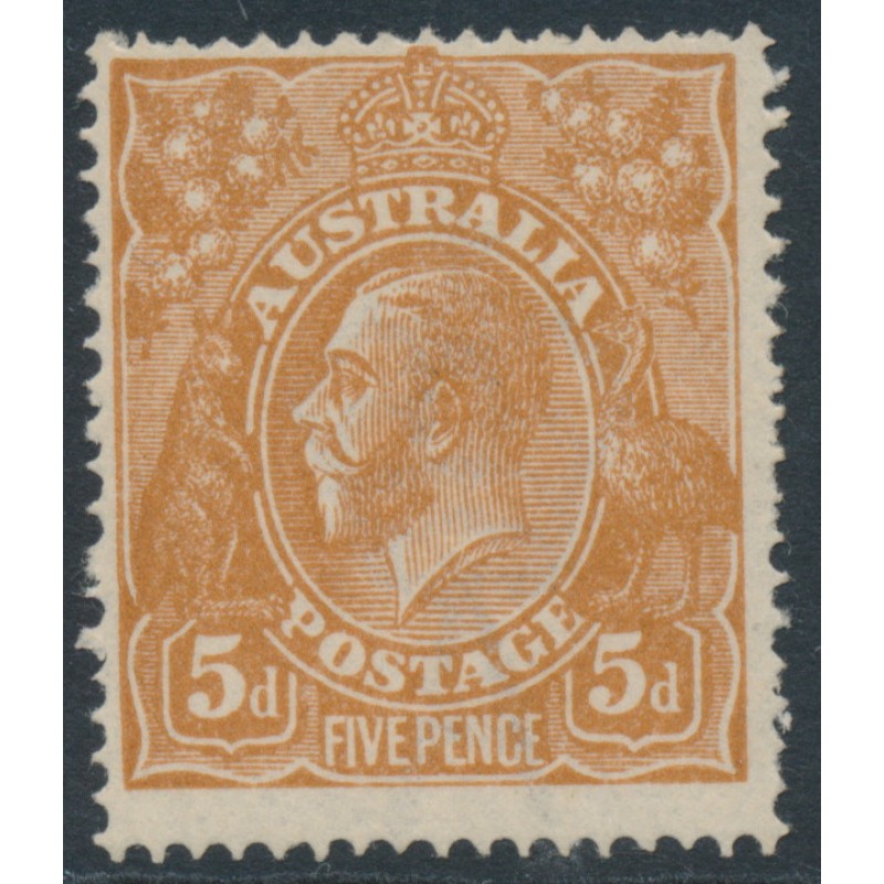 AUSTRALIA 1917 5d pale chestnut KGV Head, comb perforated, single watermark, mint hinged – no thins, tears or bends. BW(ACSC) Cat. # 123A SG Cat. # 23b