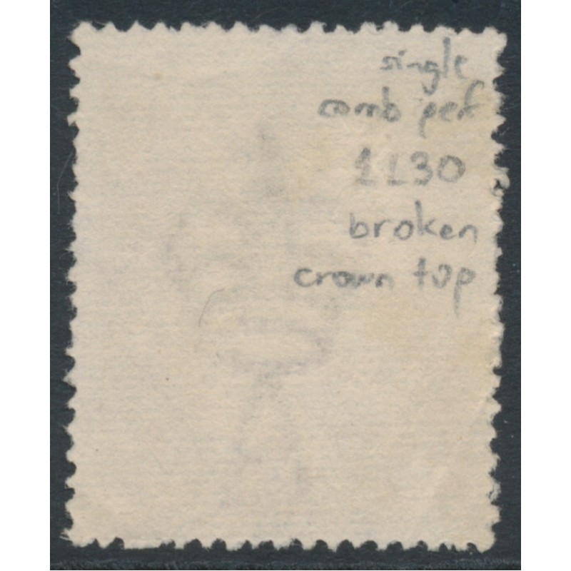 1917 5d yellow-brown KGV Head, single watermark, comb perforated, with the variety ‘broken crown top’ [position = 1L30], used – no thins, tears or bends. Has a Starling certificate.