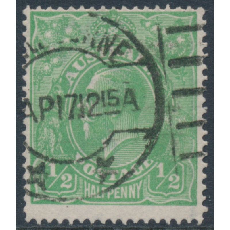 AUSTRALIA - 1915 ½d green KGV, single watermark, thin paper, used – ACSC # 63Aaa