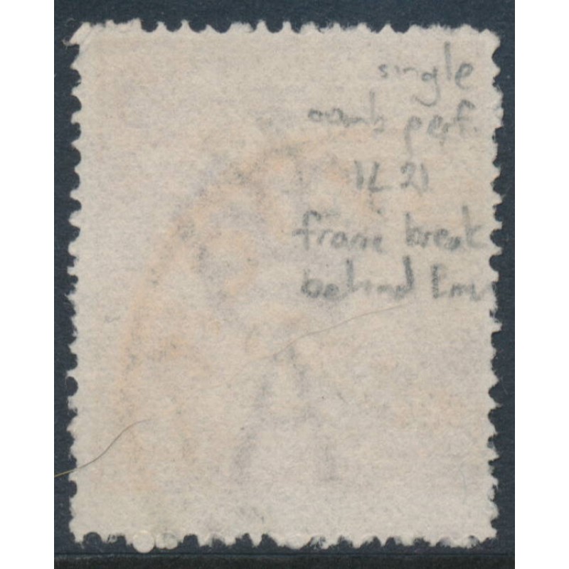 AUSTRALIA 1917 5d yellow-brown KGV Head, single watermark, comb perforated with the variety 'break in frame behind Emu' [position = 1L21], used – no thins, tears or bends. BW(ACSC) Cat. # 123Ei