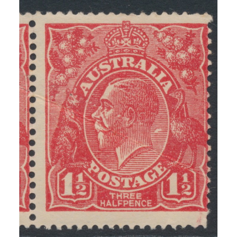 AUSTRALIA - 1924 1½d red KGV, no watermark, strip with three varieties, MH – ACSC # 90A(17)o+p +q