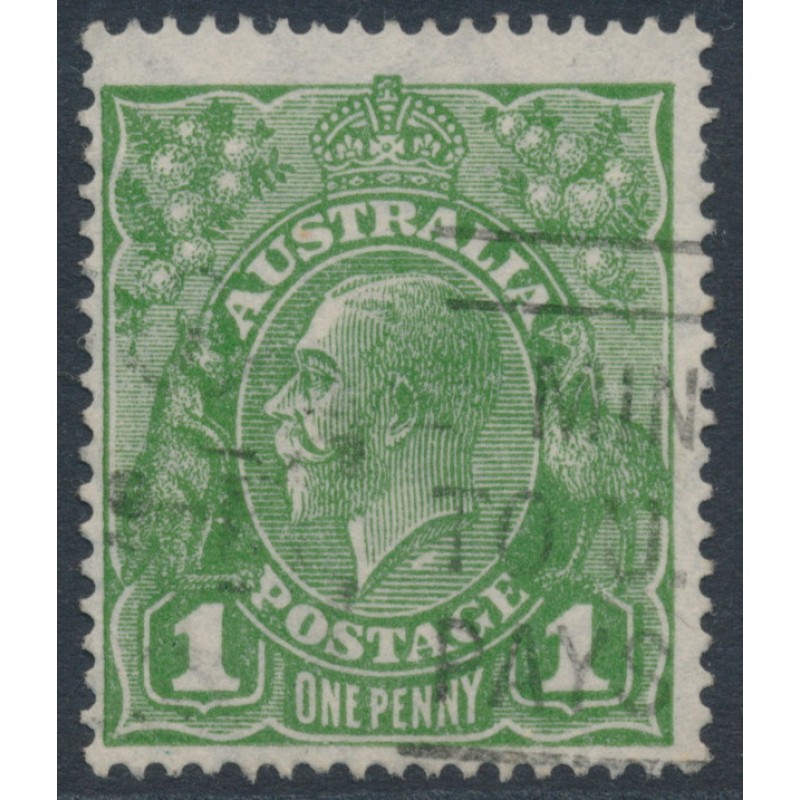 AUSTRALIA - 1926 1d green KGV, SM wmk, p.14, 'flaw under neck' [VII/37], used – ACSC # 80B(4)ha