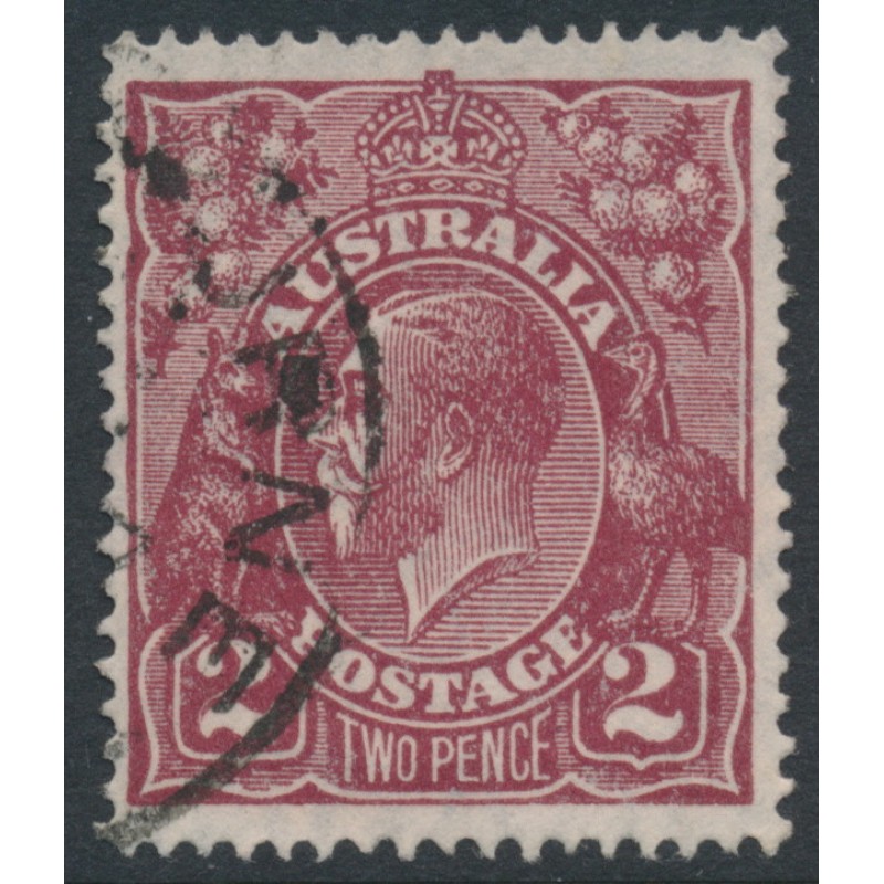 AUSTRALIA - 1927 2d brown KGV, SM wmk, p.14¼:14, 'damaged UL' [16R5], used – ACSC # 98A(16)o