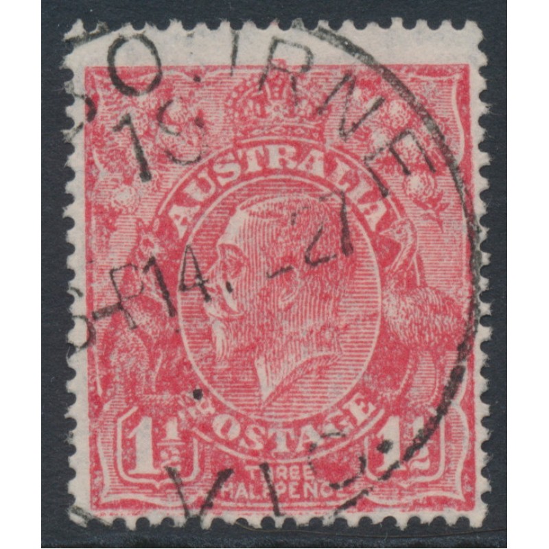 AUSTRALIA - 1926 1½d red KGV, SM watermark, p.14¼:14, 'slurred print', used – ACSC # 91Ac