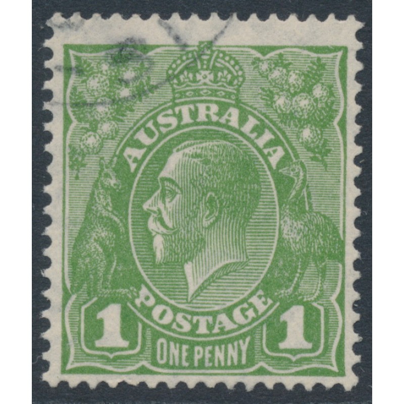 AUSTRALIA - 1931 1d pale green KGV, inverted CofA watermark, used – ACSC # 82Aa