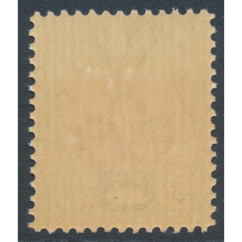 1895 5/- pale red/yellow-green Postage Due, upright V crown watermark (SG type = W33), mint never hinged – no thins, tears or bends.