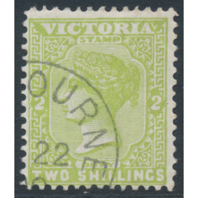AUSTRALIA / VICTORIA 1895 2/- apple green Queen Victoria, V crown watermark (SG type W33), cancelled to order – without gum, no thins, tears or bends. SG Cat. # 304