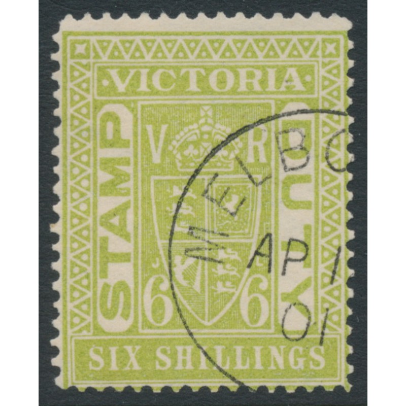 AUSTRALIA / VIC - 1899 6/- pale yellow-green Stamp Duty, perf. 12½, CTO – SG # 348