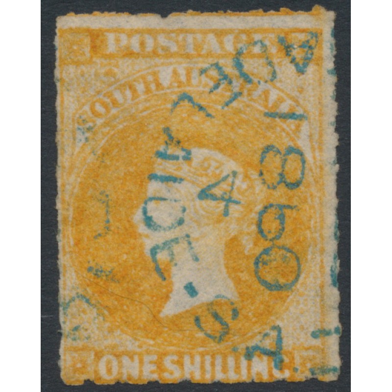 AUSTRALIA / SA - 1859 1/- orange QV, large star watermark, rouletted, used – SG # 18
