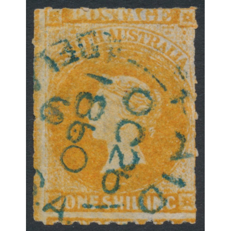 AUSTRALIA / SOUTH AUSTRALIA / S.A. 1859 1/- orange Queen Victoria Diadem, large star watermark, rouletted, used – no thins, tears or bends. SG Cat. # 18