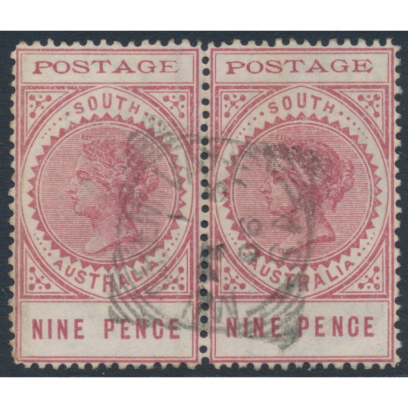 AUSTRALIA / SA - 1903 9d rosy lake Long Tom pair, thin POSTAGE, used – SG # 283