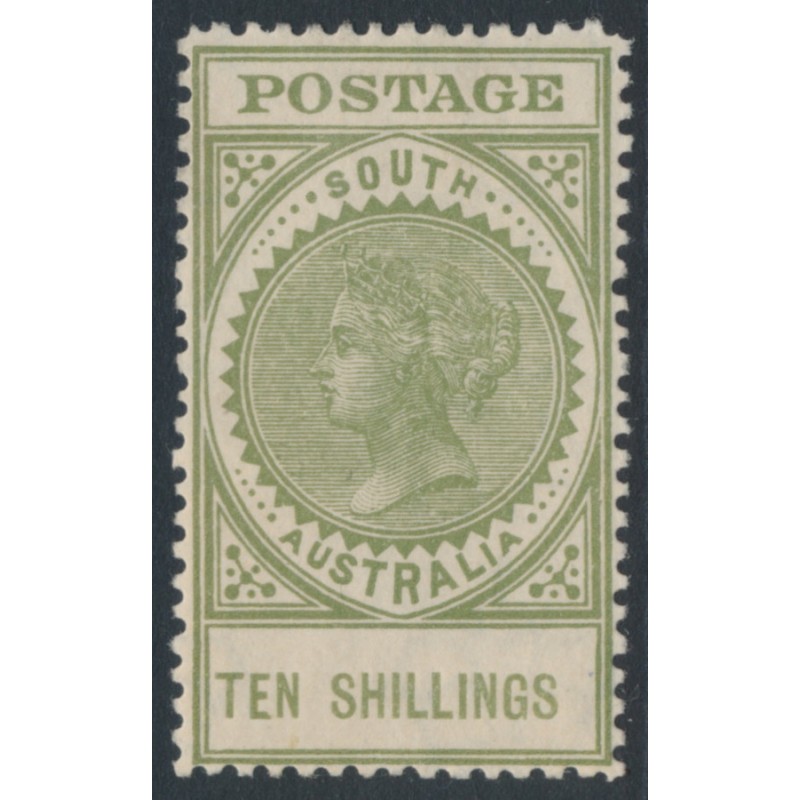AUSTRALIA / SA - 1908 10/- green Long Tom, thick POSTAGE, crown SA wmk, MH – SG # 291