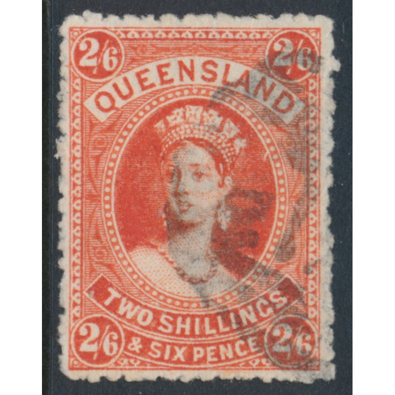 AUSTRALIA / QUEENSLAND 1886 2/6 vermilion Queen Victoria Chalon, thick paper, large Q crown watermark, postally used – no thins, tears or bends. SG Cat. # 158