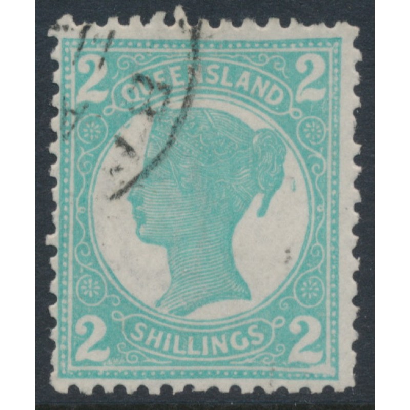 AUSTRALIA / QLD - 1897 2/- turquoise-blue QV, Q crown watermark, CTO – SG # 254