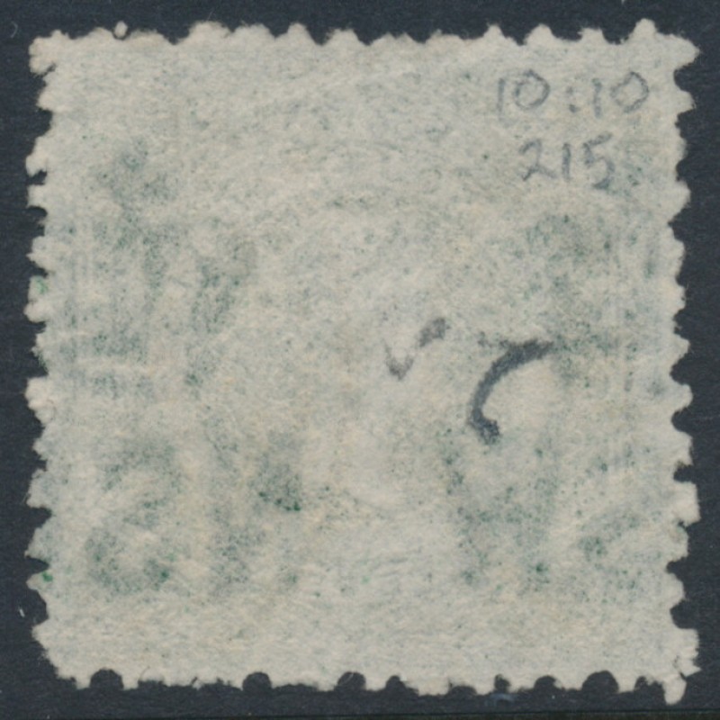 1884 5d bluish green Queen Victoria Diadem, perf. 10:10, crown NSW watermark (SG type = W36), used – no thins, tears or bends.